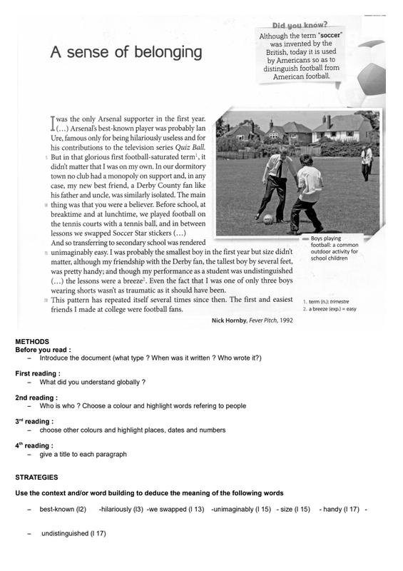 Secondly, he shows that football brings people together whatever the team yousupport. For example, he supports Arsenal whereas his best friendsupports Derby County. Moreover, he also explains that he spent mostof his free time playing football or exchanging soccer star stickers.